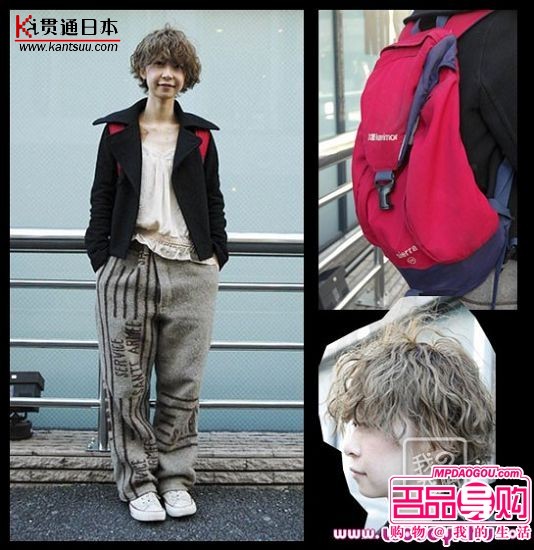 时髦的泡面头、舒适的运动裤和白色的休闲鞋,一看就是个喜爱casual感觉的女生,红色双肩包的加入,给整身打扮注入了活力,不经意间流露出的时尚。 |