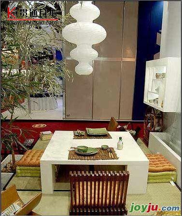 运用现代工艺材料与图案、色彩相结合,来创造一种纯净化的特定理想环境。 竹子、器皿还有纸灯,完全的日本风 |