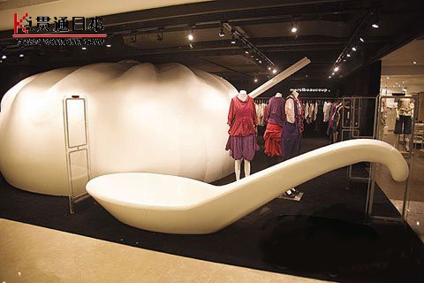 mercibeaucoup,的LOGO是一法文名字,意即Thank You Very Much,但别忘记字尾要加上逗号。 mercibeaucoup绝对是场戏!下面就要开演: 日本服装界有句话叫:“男有高桥盾,女言宇津木”一说。这“宇津木”就是我们下面要开讲的主人翁。 话说2005年,Frapbois秋冬秀造了一半,主设计师没了,从此以后Frapbois衣衫走样,毫无生趣。这设计师就是日本潮流猛人宇津木小姐。时隔一年,宇津木华丽复出,在不到两年时间迅速建立起犹如童话世界般的“Mercibeaucoup,”王国(mercibeaucoup,是一法文名字,意即Thank You Very Much,但别忘记字尾要加上豆号)。 Mercibeaucoup,衣衫有多可爱,不是我们今天的主题,今天要讲的是mercibeaucoup,的服装店。在这短短两年时间内,mercibeaucoup,在日本各大时尚中心都开设了专门店,好似东京青山,原宿,银座,涉谷PARCO,池袋西武及京都店等。这是常规思路,不值一提。 众所周知的是,所有的品牌都爱将自己的专门店LOGO化,你一进店内就知道我身处何地。而,宇津木小姐,不。她的每一家店都像是一场主题不同的嘉年华。宇津木说,这样才能产生真正的趣味,所有跟Mercibeaucoup,相关的事情都要新鲜有趣。