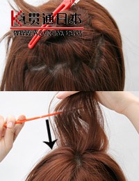 用梳柄以Z字形画圆挑出头发,然后用逆梳的方式将头发梳蓬。 |