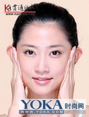 STEP 1:双手放在脸颊与耳朵的交界处,然后按照下颌的线条,由上至下按摩。 |