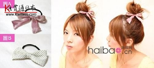 三、蝴蝶结发束 柔软蝴蝶结发束(图A): 蝴蝶结发束其实之前就很多了,但最近看到这款是外面是薄纱材质,然后裡面有铁丝圈,所以可以调整成自己想要的蝴蝶结形状,比起一般那种制式蝴蝶结,更多了些甜美的味道。 印花图案蝴蝶结发束(图B): 这种简单的蝴蝶结,上面有印了点点、或方格图案非常可爱,随便绑就很好看。 使用重点: 蝴蝶结发束很适合用来绑在包包头上面,但是如果直接去绑的话,很难控制蝴蝶结的方向。所以可以先用黑色发束、黑色发夹固定完包包头之后,再将蝴蝶结发束绕两圈,然后直接套到包包头的底部,这样不仅可以让丸子头更加固定,也能够随心所欲调整蝴蝶结要出现的方位! |
