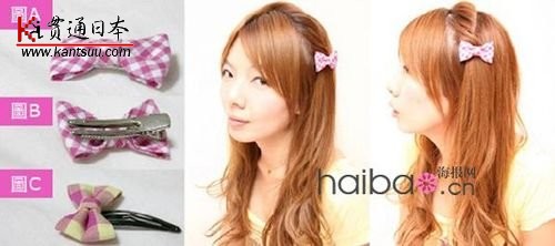 四、迷你蝴蝶结发夹 蝴蝶结发夹(图A&图B&图C): 这种逗趣的小发夹,比较适合年纪小的女生。款式比较推荐(图A)那种发夹(图B为背面),使用起来方便,想夹哪就夹哪。像(图C)那种夹子使用上会比较不优,虽然固定性佳,不过夹子拿下来却会产生痕跡,比较不推。 使用重点: 抓出一撮头发,稍微扭转,然后用小夹子固定。 |