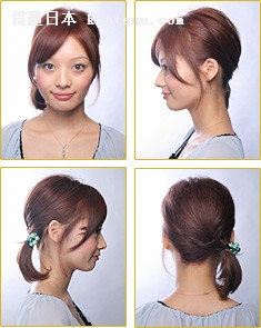 将马尾辫分一部分出来稍微微卷一下,然后往上梳用发夹夹在马尾辫的发根部,再将两边剩下的头发塞在耳后,最后再喷上一点啫喱水保持发型的姿态。