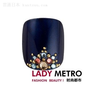 发射状的设计 发射状的设计 从下面开始做一个发射状的设计,是这款指甲的独具匠心之处。精美的水钻,让指甲更加闪耀。另外宝蓝色的运用,和其他颜色恰到好处的搭配,增加了奢华感。 |
