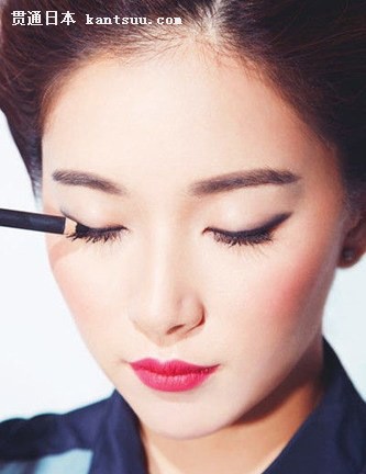 2、加重眼头眼线: 内双眼睛在睁开后,眼角睫毛根部眼线会被眼皮褶皱遮盖,所以眼角眼线要特别加重,宽度也比眼睛中间部分的眼线略宽。 |