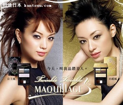 3、代言人很有味道的Maquillage 2005年8月,资生堂推出的全新彩妆品牌Maquillage,取代以时尚亮丽著称的PN系列。法文中的Maquillage原意为“彩妆、化妆”,正是为了诠释出现代成熟女性对于人生和妆扮都积极掌握、创造的自信意识。 Maquillage系列包含底妆、眼影、唇膏、修容等基础彩妆。除了以利落、简洁的黑底粉红珠光来映衬出质感,还运用了新开发的黑瞳秘技。这个牌子请来四位日本超人气的女明星做代言人,以生活化的影像传达美学理念,药妆店里也会播放这些广告片呢,真的很美。 |