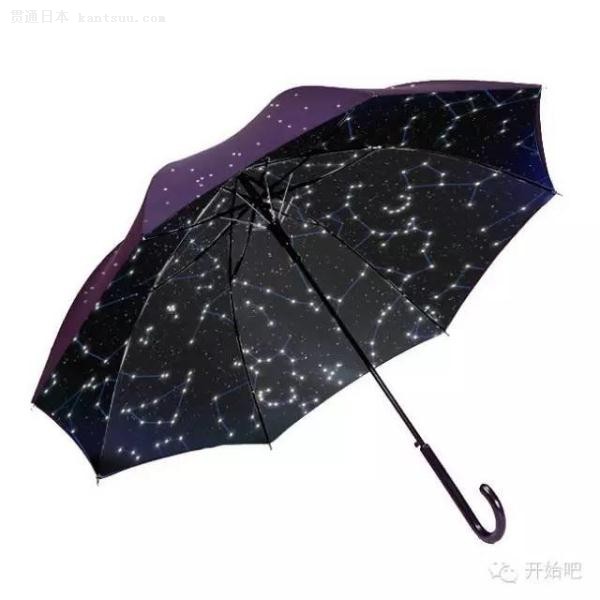 伞面上有无数个透光的防水小孔,夜晚路灯的光穿过伞,点点星光投在身上