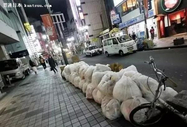 日本各个商铺的垃圾整齐地码放在规定的地方。
