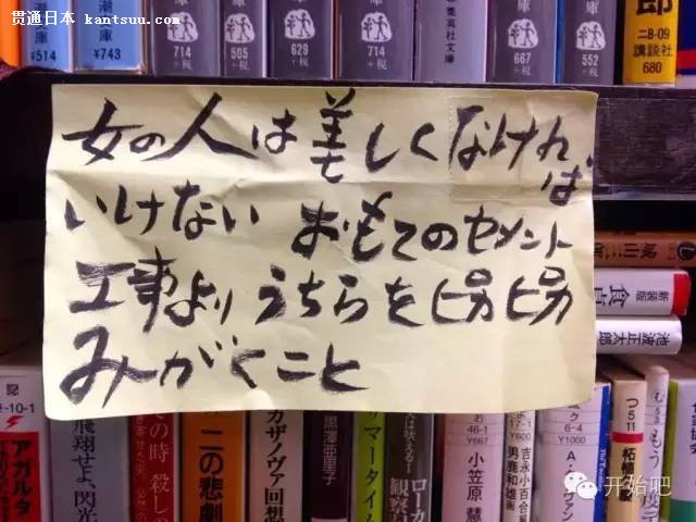 除了丰富的藏书,小店最吸引人的还有坂本健一写的小箴言。 被贴在各个角落,大大小小的纸张上,写满了鼓励人读书的话语。墙上、书架......任何你看得到的地方。真是不喝下碗鸡汤,都别想走出这个门。 你仿佛能看到他眯着眼笑着说:“虽然只有一次,但可以活出不同的人生;虽然只有一册,但可以有不同的邂逅。”