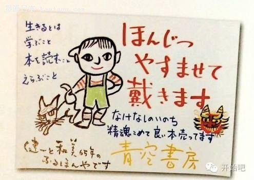 还有那些会在星期天贴在店门口的手绘海报。 可爱的涂鸦配着简洁的文字: “人活着就是要学习、阅读、选择书本,以渺小的生命,竭尽所能出售好书。”