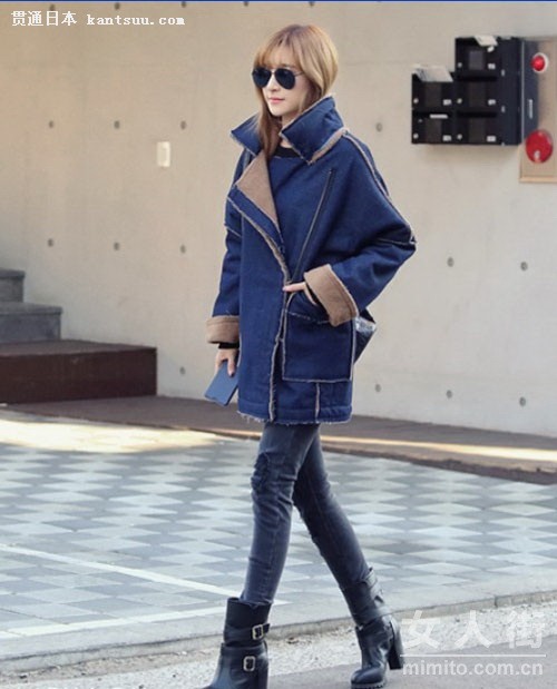 时尚牛仔面料保暖大衣,个性的斜拉链设计,帅气的牛仔面料,搭配短靴尽显明星范。 |