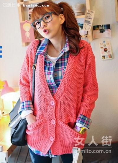 大V领的针织外套和衬衫绝对是最佳拍档,鲜艳亮丽的西瓜红很提肤色哦。 |
