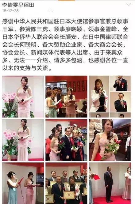 李倩雯在大学时代就曾当选中日友好亲善大使,出席各种活动,为中日友好作贡献,还和安倍同台,和日本亲日派前首相鸠山由纪夫合影,出席大使馆活动,和外交家合照,与政治家会谈,人脉相当牛逼,看来中日友好就靠美女啦!前不久,更是获世界华裔小姐大奖。