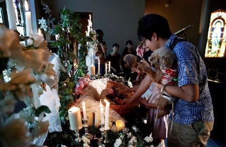 据英国《路透社》9 月 18 日报道,当地时间周一,日本东京举办了一场别开生面的 " 宠物彩虹节(Pet Rainbow Fiesta)" 活动,活动现场主要是为宠物举办各种仪式,其中包括火化、设立祭坛、焚香诵经等。据悉,对于宠物的葬礼,日本人可以说是做到了极其细致的地步,当地还有一些专门的寺庙为宠物服务。图为活动现场一位女子正在哀悼宠物。
