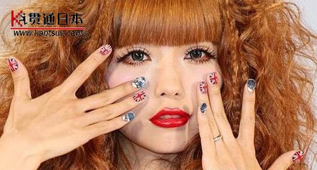 日本时尚杂志模特当天的英伦风情主题的美甲也与当日着装相辉映。小小的美甲也能做大文章,稍稍改变一下颜色与图案,就有不一样的改变。虽然都是国旗的造型,但是2种国旗在指甲上有规则的排列也非常有趣。