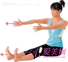 (1) 端坐床上,双脚朝前伸直,两手如图向前伸直。右手右脚同时向前伸出,身体自然向前进。